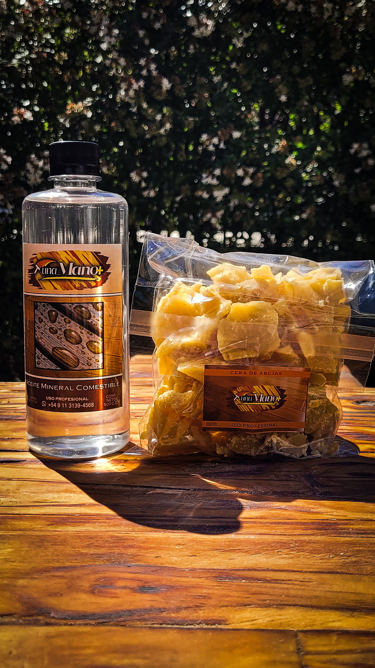 La publicación corresponde a 500 cc de Aceite Mineral y 250 gr de pura cera de abejas.