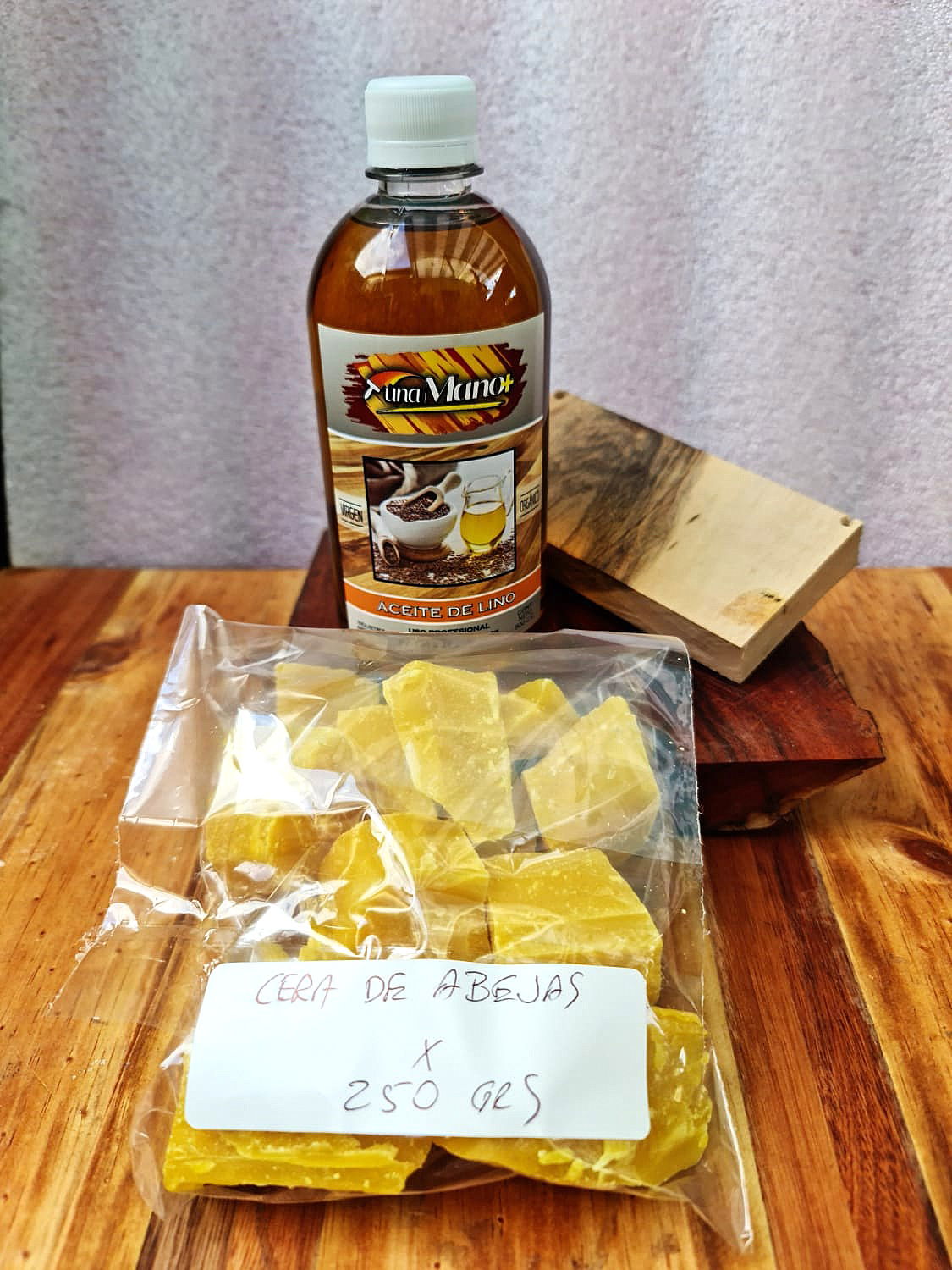 Combo Aceite de Lino x 500 cc + Cera de Abejas x 250 gr