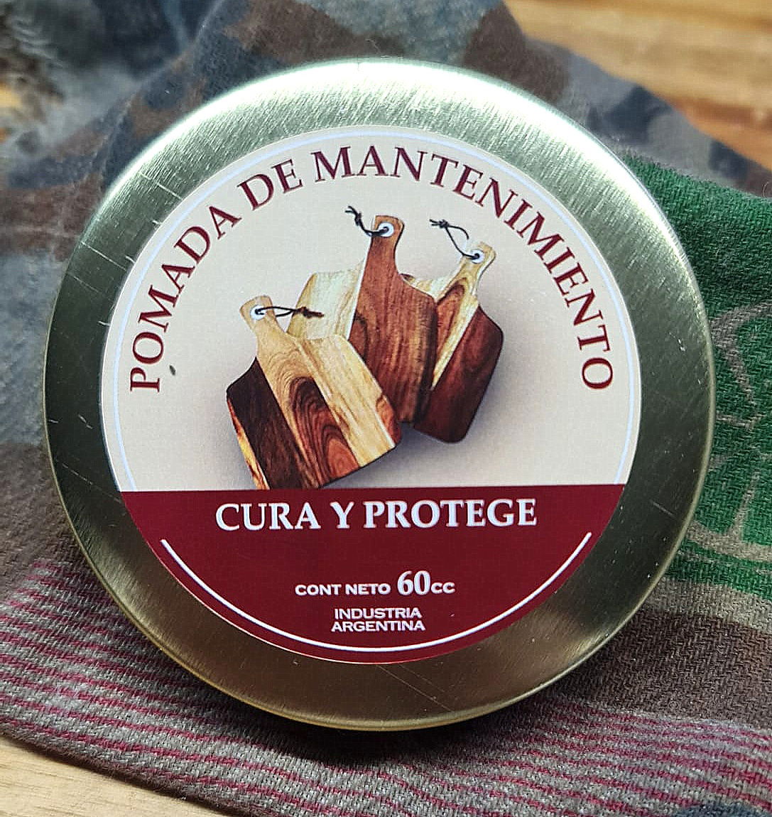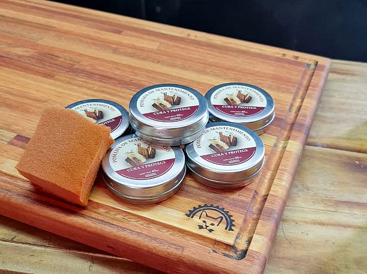 La publicación corresponde a LATAS DE MANTENIMIENTO de 60 cc de Pomada Natural para curar maderas utilizadas en tablas de alimentos, utensilios, juguetes, mates, platos de maderas, adornos, cerámicas y cueros.