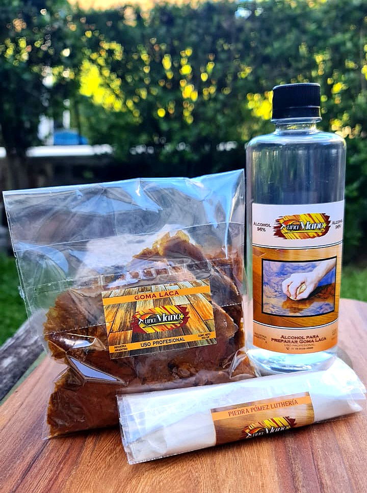 100 grs. de Goma Laca en Escamas: Resina natural de la más alta calidad, la base del barniz tradicional. Proporciona una capa de protección fina, duradera y que permite la máxima resonancia a la madera.